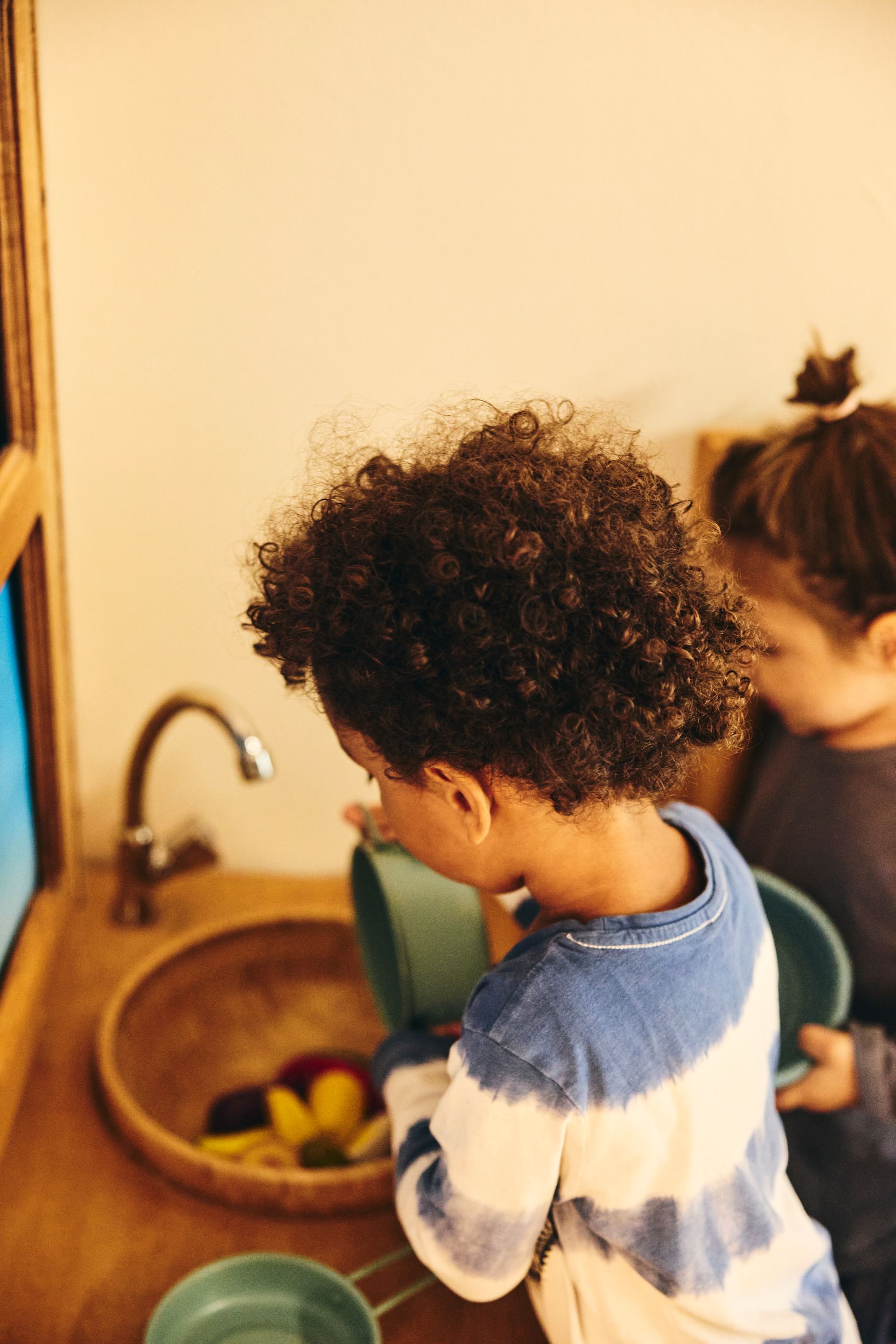 Außerdem haben wir ein eigenes Außengelände mit einem Sandkasten zum Buddeln und Matschen, und die Möglichkeiten zu klettern und zu balancieren. In einem zusätzlichen Außenbereich mit kleinen Blumen- und Gemüsebeeten können Pflanzen angebaut und Insekten beobachtet werden. Eine Bank und andere Sitzmöglichkeiten, laden zum Verweilen ein und um sich vielleicht ein Buch mit der Bezugserzieherin anzuschauen.